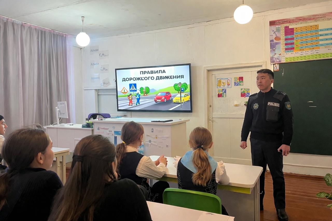 В школе по плану месячника «Закон и порядок» прошла встреча с УИП старшим лейтенантом Кайсаевым Бекзатом Аяновичем. Во время беседы он напомнил учащимся о правилах дорожного движения, рассказал о важности соблюдения мер личной безопасности, а также о правилах поведения при возникновении пожаров. Встреча получилась познавательной и полезной для всех участников.