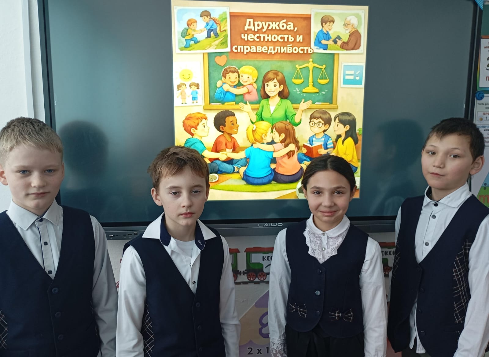 В начальных классах обсуждали тему «Дружба, честность и справедливость».
